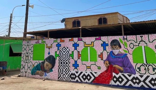 Cantagallo, wedged between a highway and the Rímac River at the foot of the Cerro San Cristobal, is a slum that was built on a landfill that has become the home and diasporic community of the Shipibo-Konibo, an Amazonian ethnic minority group from the Ucayali region of Peru. Founded in 2000 by indigenous Shipibo families who were part of a mass migration of immigrants pushed out of their communities by logging, illegal mining, and infrastructure development in the Amazon, Cantagallo has grown into a symbol of resilience and cultural center of indigenous identity and culture in Peru’s capital of Lima.